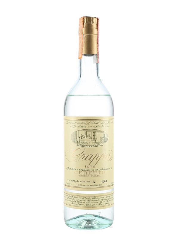 A bottle of Grappa Ceretto 1979 from Italy. This is bottle number 4264 from 4850 bottles.