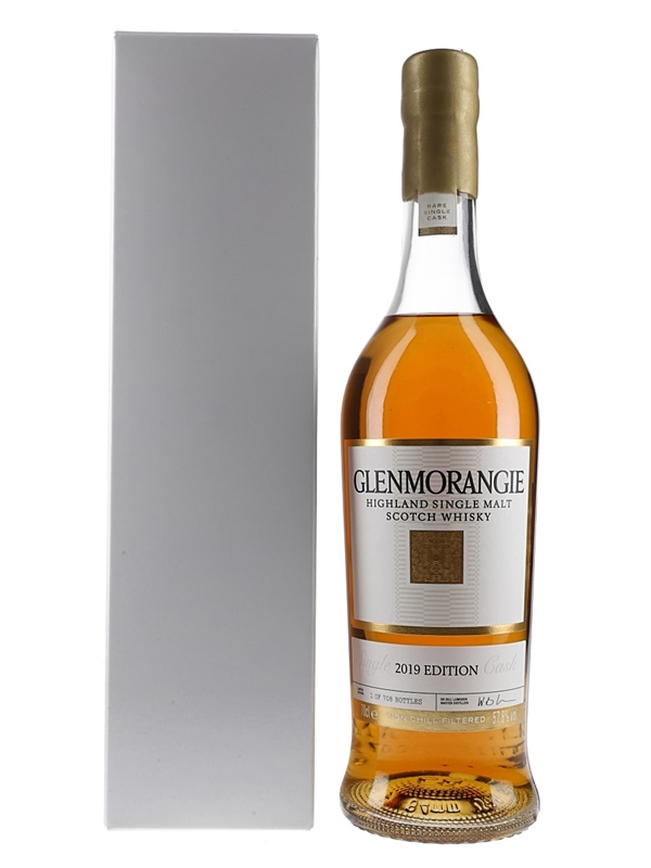A bottle of Glenmorangie 2019 Edition Rare Single Cask Highland Single Malt Scotch Whisky, bottled at 57.6% ABV. This is one of 708 bottles.