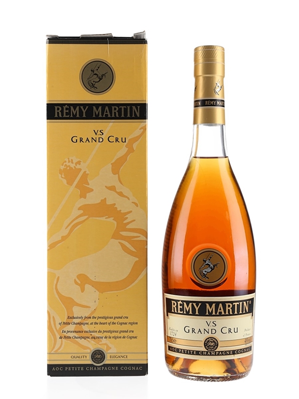 A bottle of Rémy Martin VS Grand Cru, made from grapes grown in the Petite Champagne region of Cognac.
