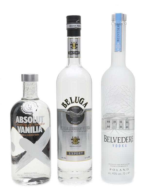 Beluga Vodka, Belvedere Vodka & Absolut Vanilla Vodka 3 x 70cl / 40%