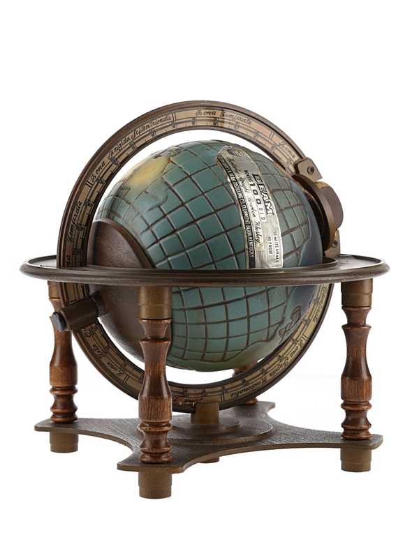 A bottle of Jim Beam 100 Months Old Kentucky Straight Bourbon Whiskey presented in a Globe decanter. The base of the decanter reads: Genuine Regal China.