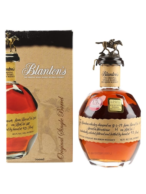 A bottle of Blanton's Single Barrel Kentucky Straight Bourbon Whiskey, bottled for Gordon & MacPhail Exclusive Barrel Selection, imported to the UK by Gordon & MacPhail.