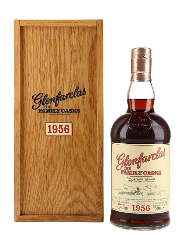 A bottle of Glenfarclas 1956 The Family Casks. This was matured in a sherry butt and bottled on 27 February 2007 from cask number 1758.