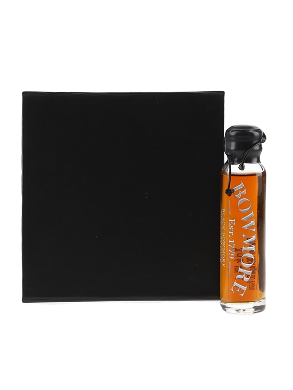 A 2cl miniature bottle of Bowmore 1964 Black Bowmore 50 Year Old The Last Cask Single Malt Scotch Whisky.