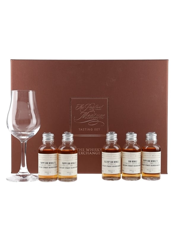 The Perfect Measure Tasting Set from The Whisky Exchange contains five 3cl miniature sample bottles of Pappy Van Winkle including Old Rip Van Winkle 10 Year Old, Van Winkle 12 Year Old, Pappy Van Winkle's 15 Year Old, Pappy Van Winkles 20 Year Old and Pappy Van Winkle's 23 Year Old.