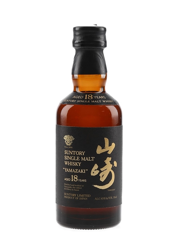 A miniature bottle of The Yamazaki 18 Year Old Single Malt Whisky from Japan. The bottling code indicates this was bottled in 2004.