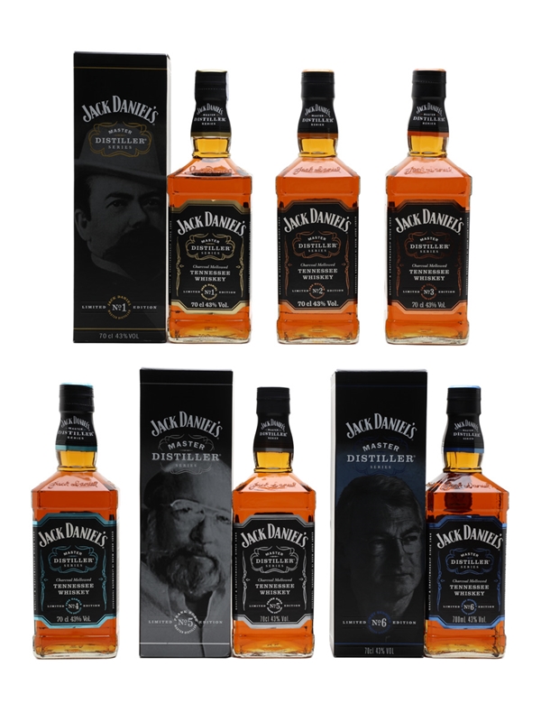 This lot contains six bottles of Jack Daniel's Master Distiller Series Numbers 1 to 6. This series honours the seven Master Distillers who have overseen the production of Jack Daniel's whiskey since 1875.