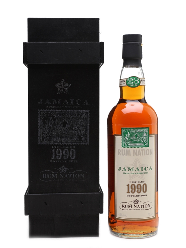 A bottle of 1990 single domaine Jamaica rum from Rum Nation, aged for 23 years and bottled in 2013.