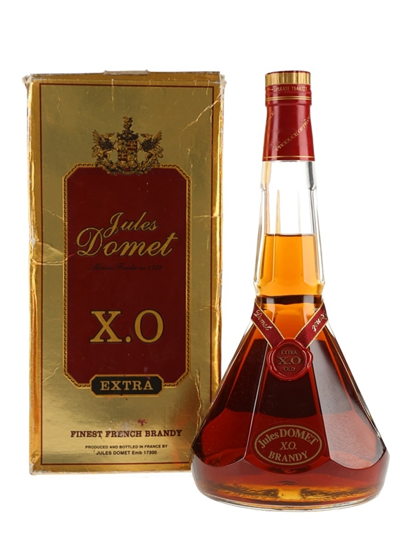 A bottle of Jules Domet XO Extra Old Brandy produced and bottled in France for the Singaporean market.