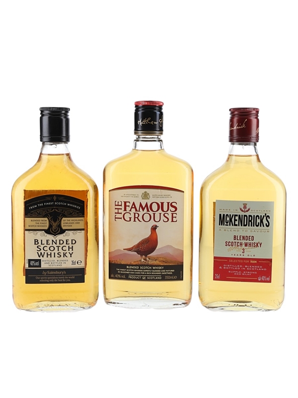 This lot contains three 35cl bottles of Asda McKendrick's, Famous Grouse and Sainsbury's Blended Scotch Whisky.