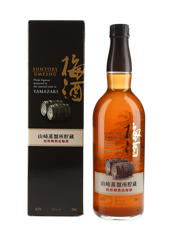 A bottle of Suntory Umeshu Plum liqueur from Japan. This plum liqueur was aged in toasted oak whisky casks in Yamazaki distillery, it was then blended with whisky that was aged in plum liqueur casks.