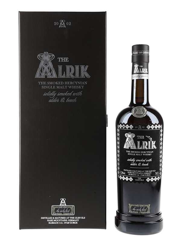 A bottle of The Alrik Smoked Hercynian Single Malt Whisky from Germany, the Early Bird edition.