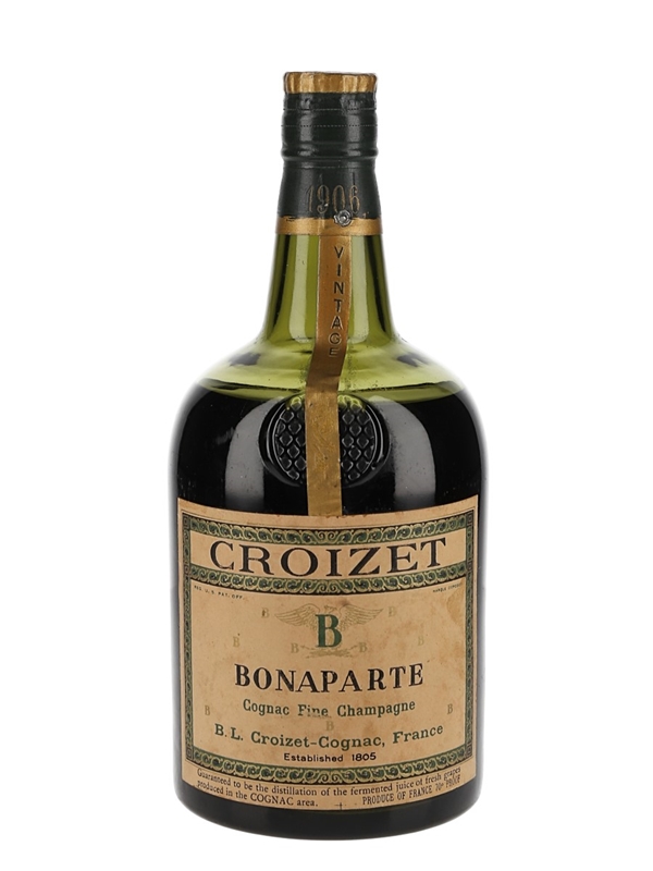 A bottle of 1906 Croizet Bonaparte Fine Champagne Cognac. We estimate this was bottled in the 1960s.