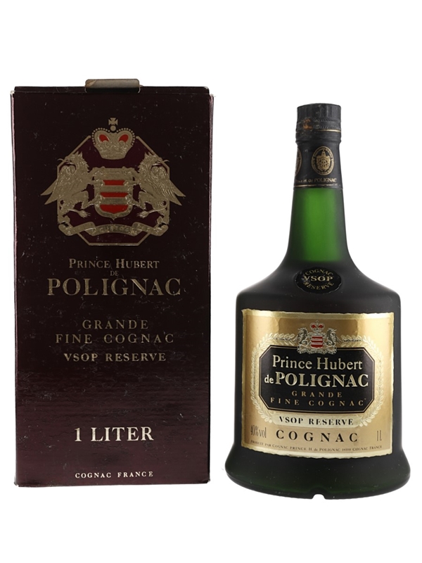 A litre bottle of Prince Hubert de Polignac VSOP Reserve Grande Fine Cognac. We estimate this was bottled in the 1980s.