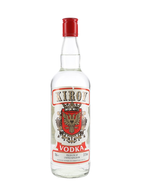 A bottle of Kirov Vodka produced by Halewood Vintners Ltd., Roberttown United Kingdom. We estimate this was bottled in the 1990s.