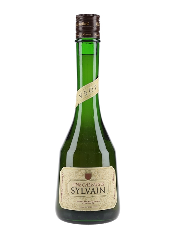 A bottle of Sylvain VSOP Fine Calvados, an apple brandy which was matured in oak casks before bottling.