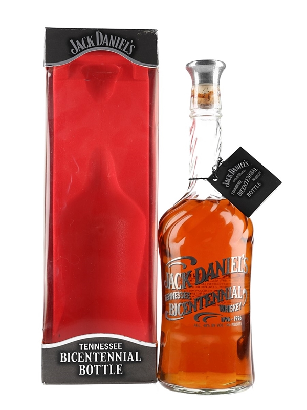 A bottle of Jack Daniel's Bicentennial, bottled at 48% ABV in 1996 to celebrate the 200th anniversary of the state of Tennessee. The bottle is a replica of the one designed by Mr Daniel himself to celebrate the 100th anniversary of the state in 1896. This comes in a presentation box with a certificate of authenticity. This is bottle number 33580.