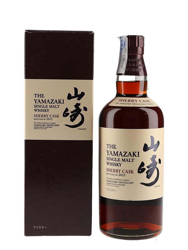 A bottle of The Yamazaki Sherry Cask Single Malt Whisky, produced by Suntory, Japan, bottled in 2013. It was imported by Morrison Bowmore Distillers Ltd.