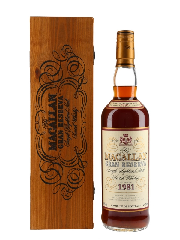A bottle of The Macallan Gran Reserva Single Highland Malt Scotch Whisky. This was distilled in 1981 and matured in sherry casks.