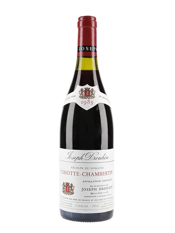 A bottle of 1985 Griotte-Chambertin Grand Cru from Burgundy, bottled by Joseph Drouhin.