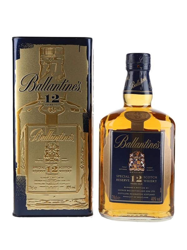 A bottle of Ballantine's 12 Year Old Special Reserve blended Scotch whisky.