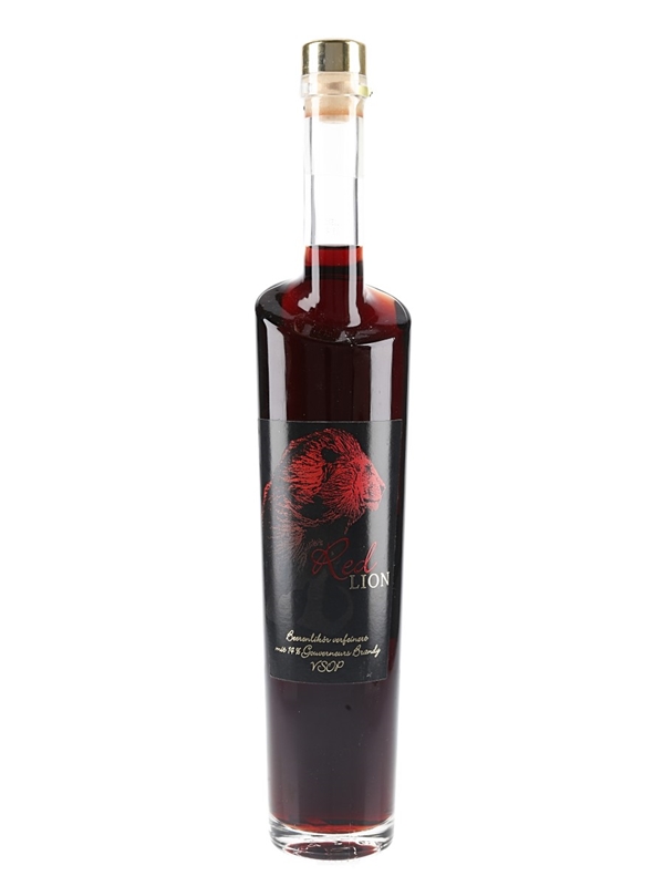 A 50cl bottle of Red Lion, a berry liqueur refined with 14% VSOP brandy.