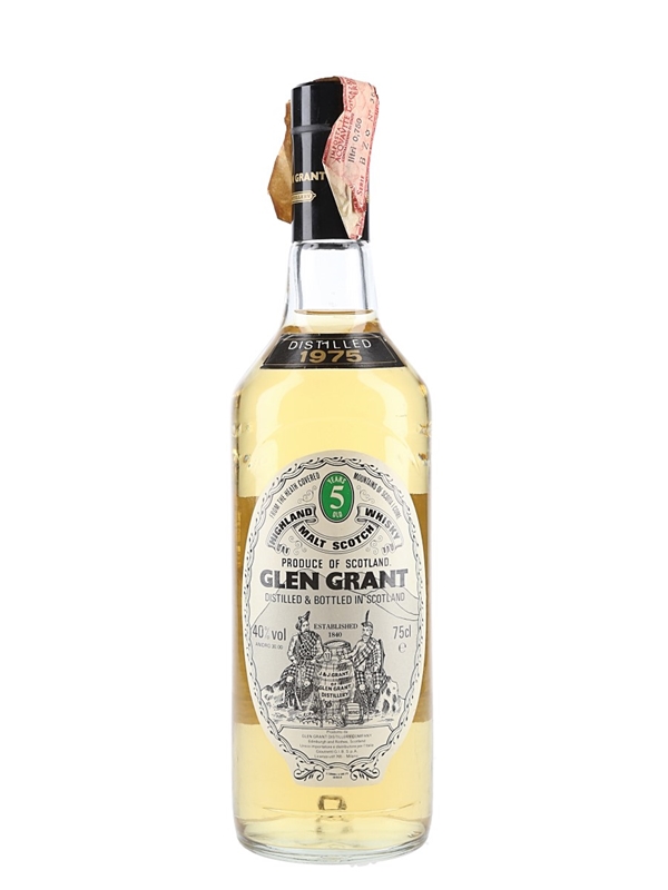 A bottle of Glen Grant 5 Year Old Highland Malt Scotch Whisky. This was distilled in 1975 and imported to the Italian market by Giovinetti, we estimate in the 1980s.