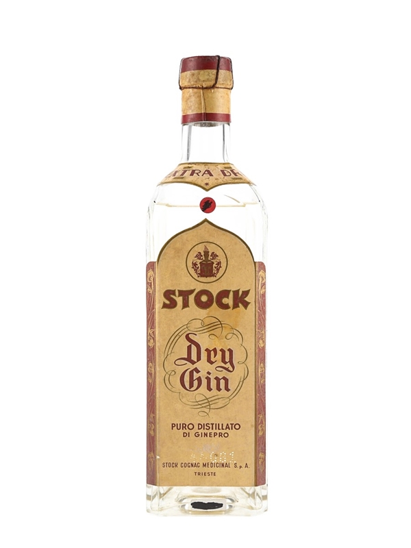 A bottle of Stock Extra Dry Gin from Italy. The duty medal indicates this was bottled between 1947 and 1949.