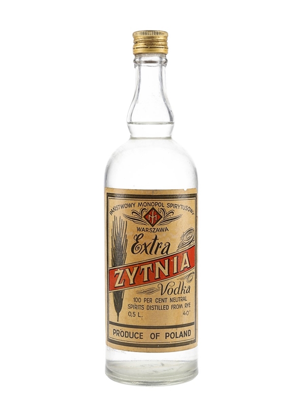 A 50cl bottle of Zytnia Extra Rye vodka. This was produced by Polmos, a Polish state owned monopoly which controlled the Polish drinks market from its foundation in the 1920s, to the fall of communism in 1989, when Polmos was divided into several independent enterprises. We estimate this was bottled in the 1970s to 1980s.