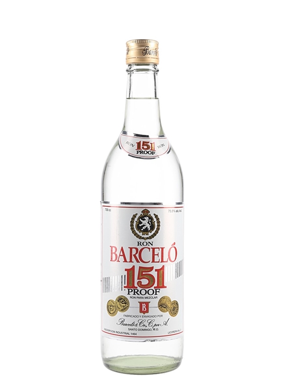 A bottle of Ron Barcelo 151 Proof Rum from Dominican Republic.