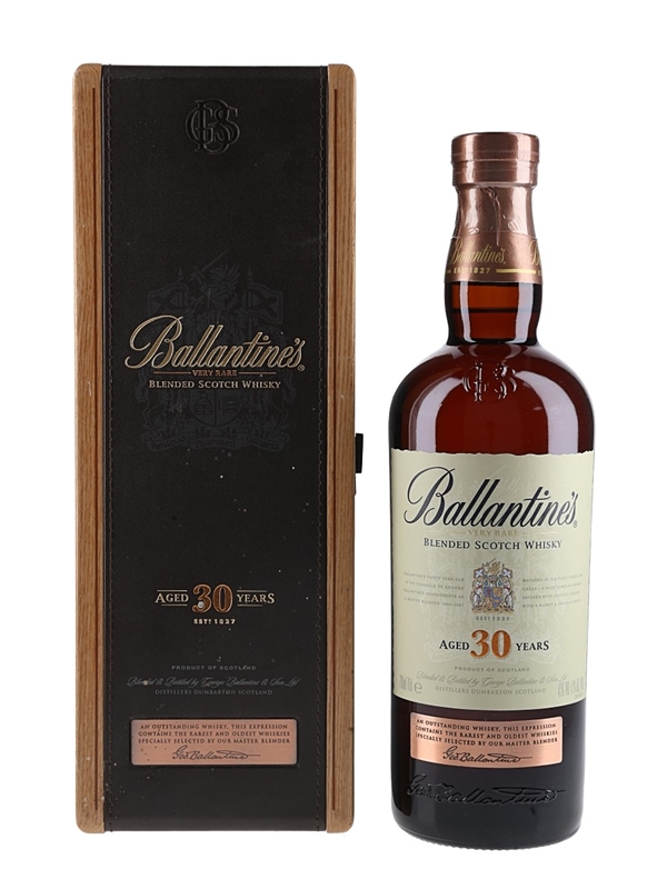A bottle of Ballantine's 30 Year Old Very Rare Blended Scotch Whisky, the oldest expression in the Ballantine's range.