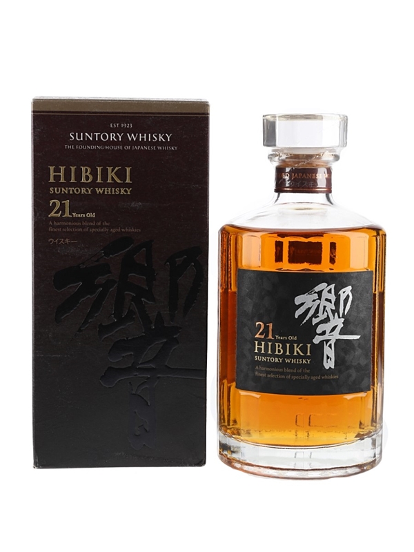 A bottle of Hibiki 21 Year Old Suntory Japanese Blended Whisky.