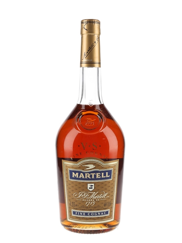 A litre bottle of Martell 3 Star VS Fine Cognac. We estimate this was bottled in the 1990s.