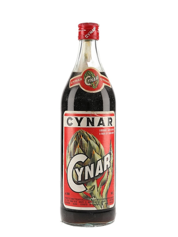 A litre bottle of Cynar, a bitter liqueur made from 13 herbs and plants, predominantly artichoke. We estimate this was bottled in the late 1970s to 1980s.