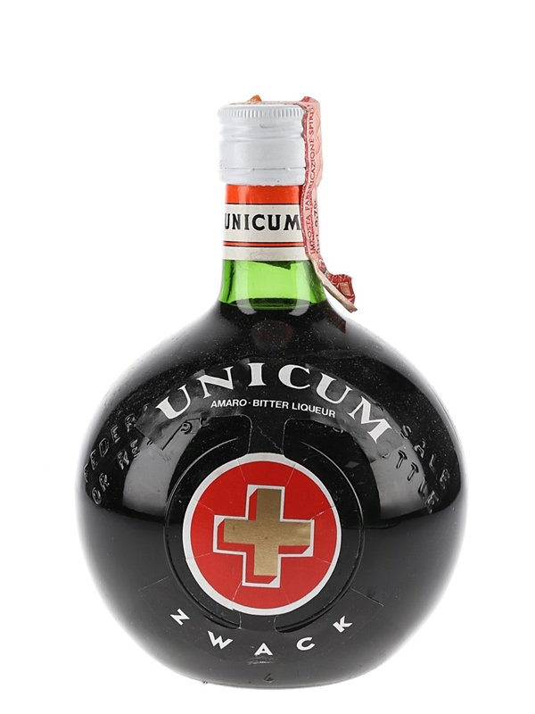 A bottle of Zwack Unicum, a bitter herbal liqueur from Hungary. This was imported to Italy by Spirit, we estimate the 1970s.