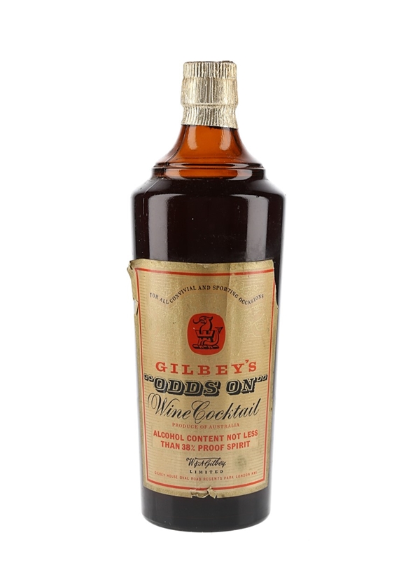 A bottle of Gilbey's Odds On Wine Cocktail from Australia. We estimate this was bottled in the 1940s.