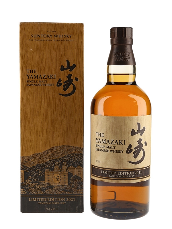 A bottle of The Yamazaki Single Malt Japanese Whisky Limited Edition 2021.