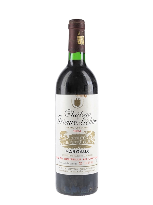 A bottle of 1984 Château Prieuré Lichine Grand Cru Classé from Margaux, a 70 hectare 'fourth growth' estate planted with 50% Cabernet Sauvignon, 45% Merlot and 5% Petit Verdot.