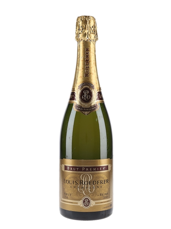 A bottle of Louis Roederer Brut Premier NV Champagne, a blend of 40% Chardonnay, 40% Pinot Noir and 20% Pinot Meunier.