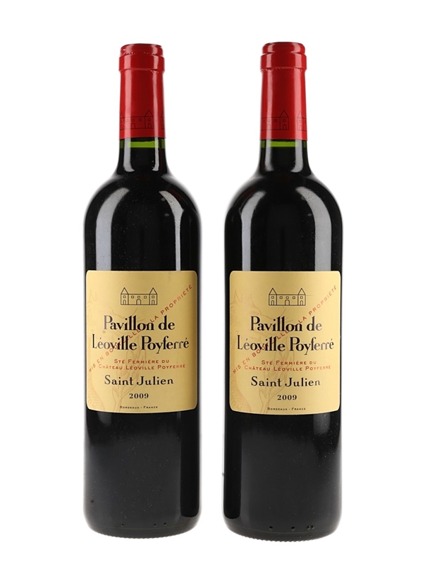 This lot contains two bottles of 2009 Pavillon de Leoville Poyferré, the second wine from Château Léoville Poyferré in Bordeaux's Saint-Julien appellation.