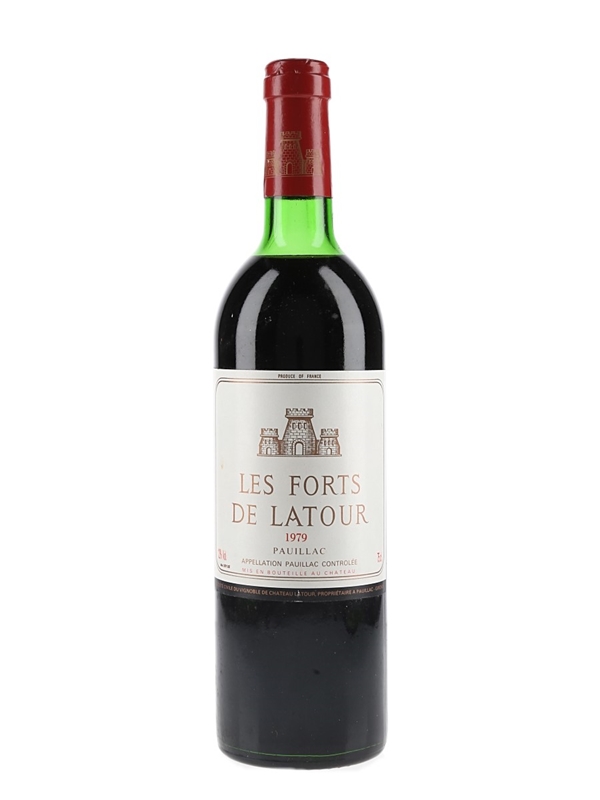 A bottle of 1979 Les Forts de Latour, the second wine of 'First Growth' Château Latour from Bordeaux's Pauillac appellation.