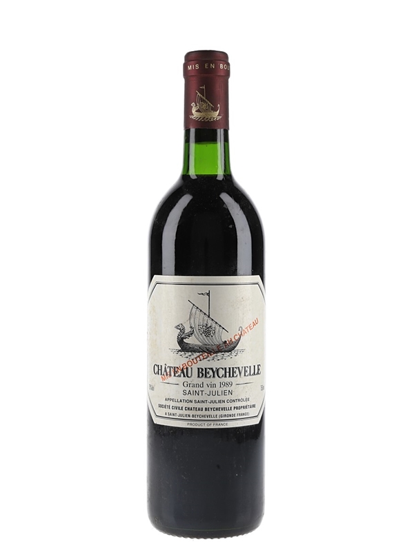A bottle of Château Beychevelle Grand Vin 1989 from Bordeaux's Saint-Julien appellation.