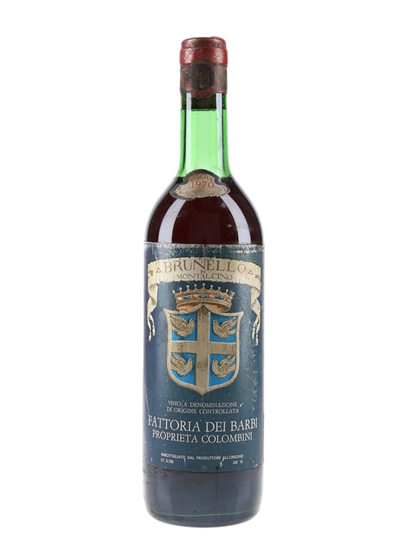 A 73cl bottle of 1970 Brunello di Montalcino Riserva produced and bottled by Fattoria Dei Barbi.