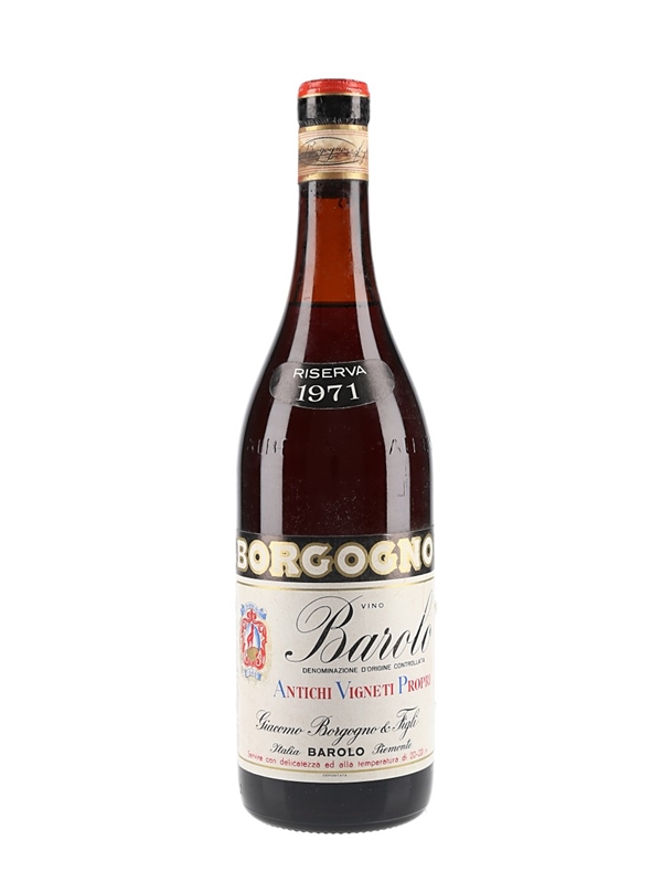 A 72cl bottle of 1971 Borgogno Barolo Riserva, produced and bottled by Giacomo Borgogno & Figli.