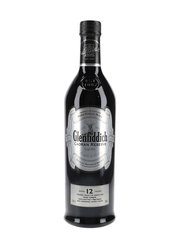 A bottle of Glenfiddich's discontinued Caoran Reserve 12 Year Old Single Malt Scotch Whisky. Subtitled 'Peat Ember', this uses lightly peated barley for a smoky twist on the traditional Glenfiddich character.