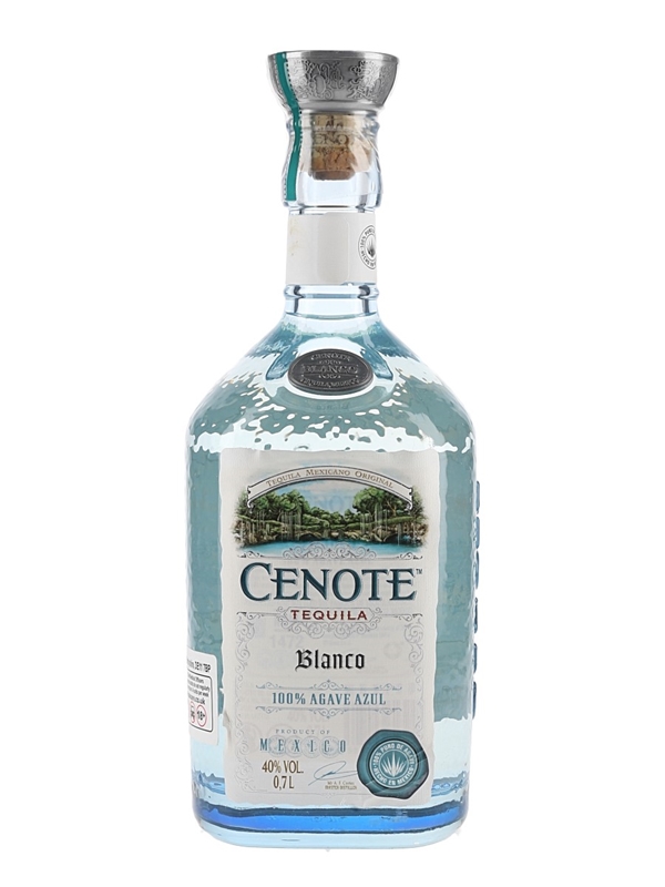 A bottle of Cenote Blanco Tequila from Mexico.