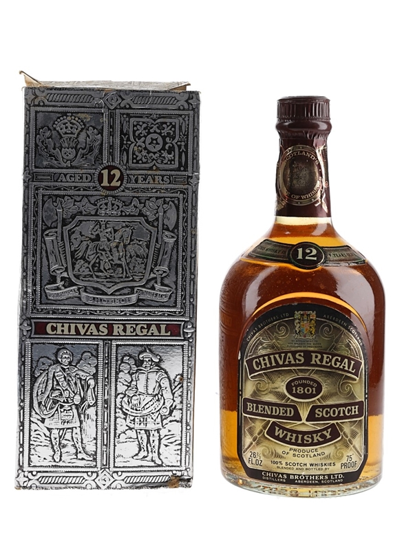 A bottle of Chivas Regal 12 Year Old Blended Scotch Whisky, blended by Chivas Brothers Ltd. We estimate this was bottled in the 1970s.