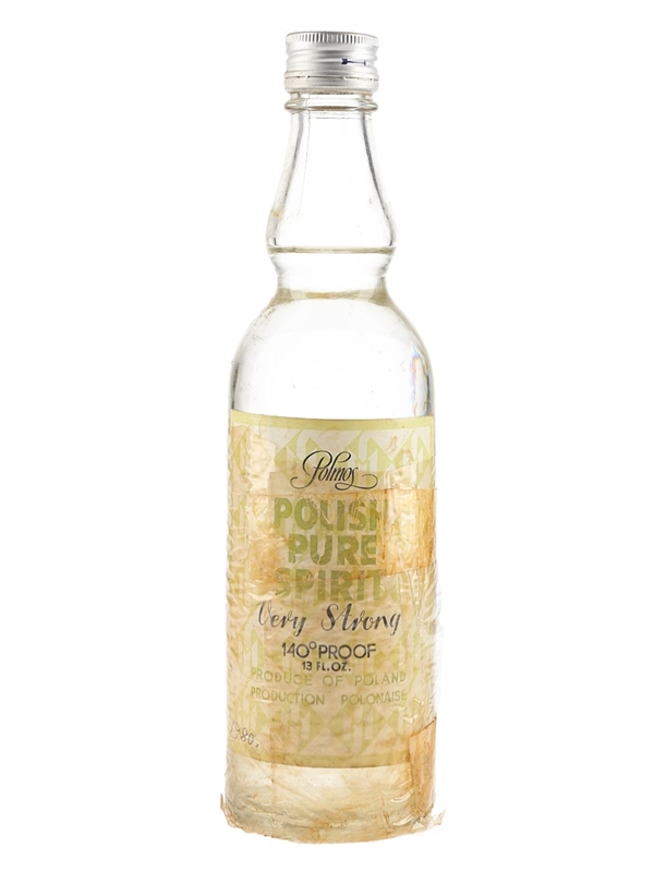 A 37.5cl bottle of Polmos Very Strong Pure Spirit from Poland bottled at 80% ABV. We estimate this was bottled in the 1970s to 1980s.