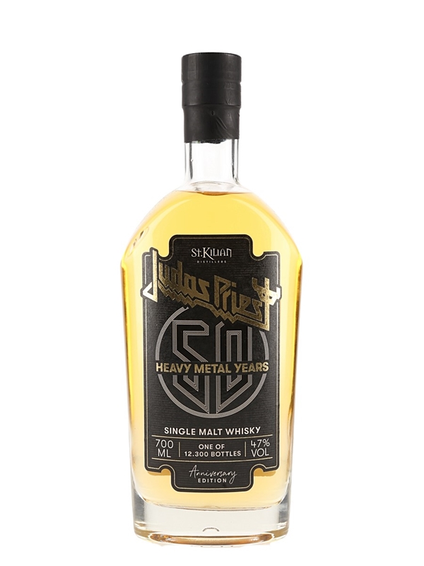 A bottle of St Kilian Judas Priest four year old German Single Malt Whisky matured in ex bourbon casks and was married with whiskies from ex rye and ex brandy Jerez casks. This was released to celebrate the 50 Anniversary of Judas Priest. This is one of 12300 bottles.