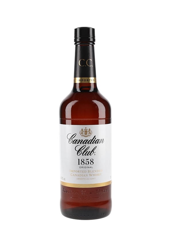 A bottle of Canadian Club Imported Blended Canadian Whisky.